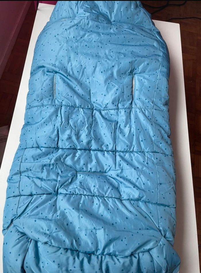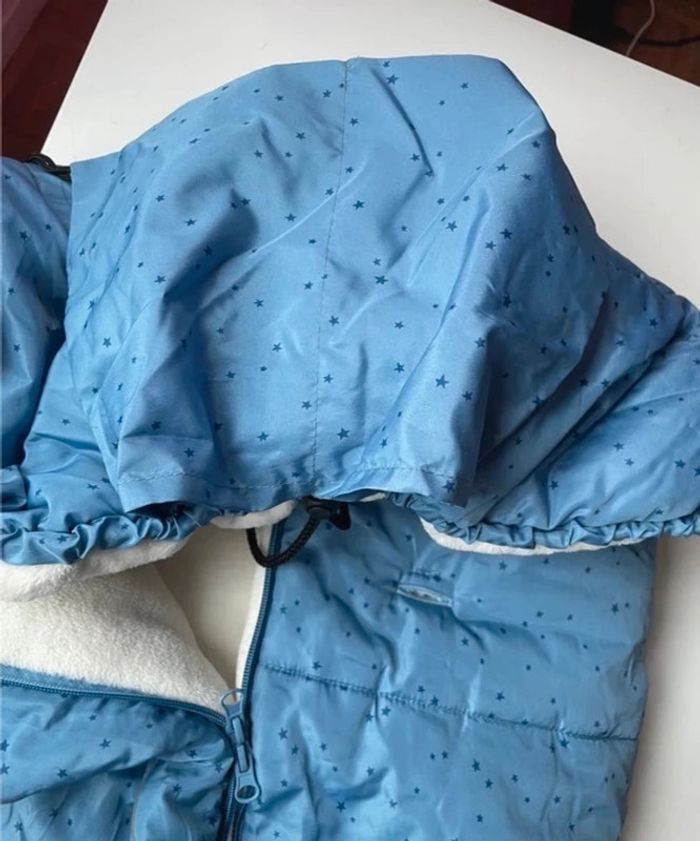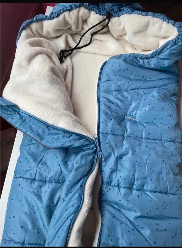 Elle est neuve. Longueur totale 90 cm, largeur 46 cm . Deux poches de rangement en haut. Fermeture éclaire double sens Doublée bien chaud e