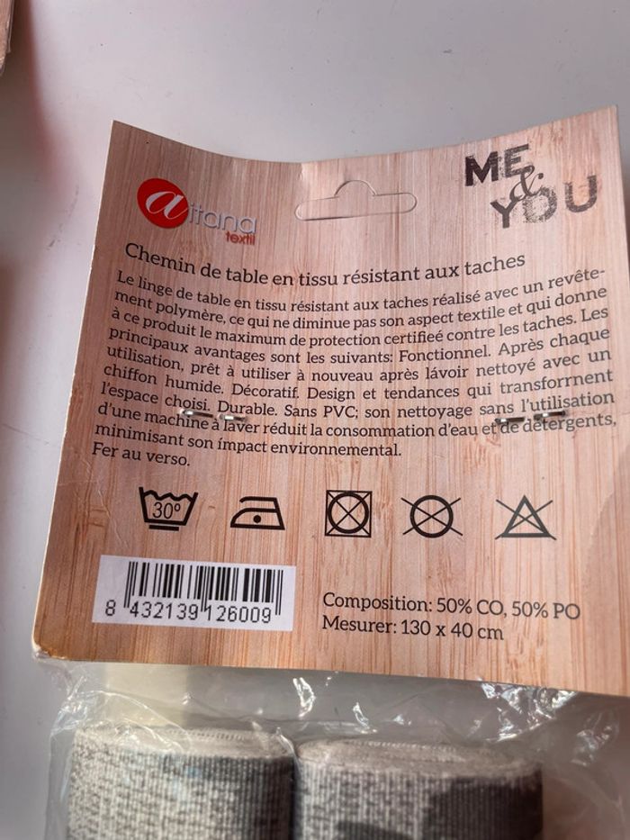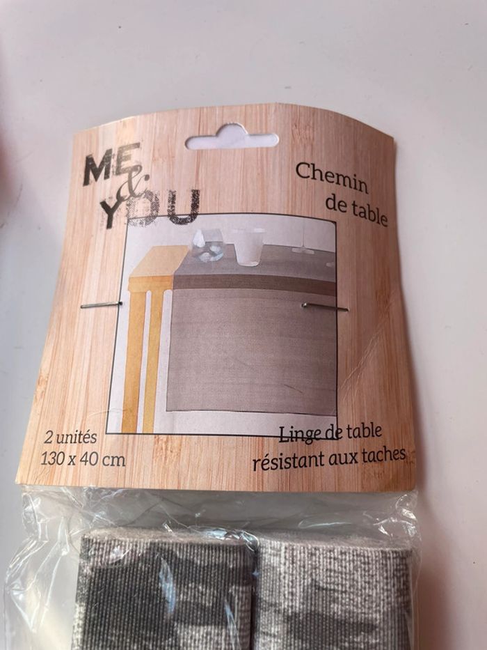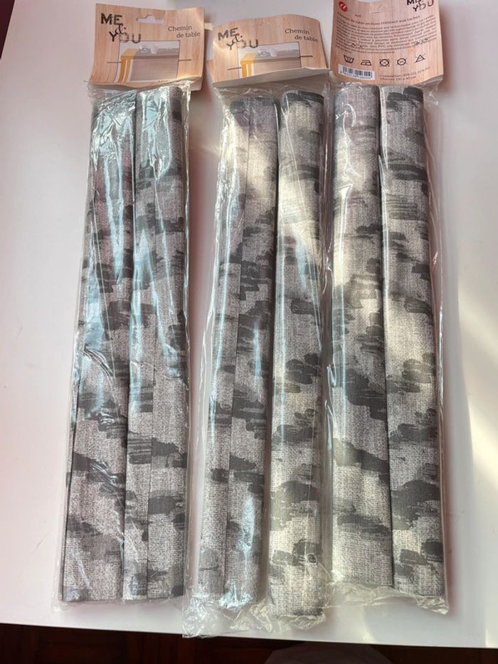 Lot de 6 chemins de table neuf de la taille 130x40 cm Anti-tache 50% coton/50% polyester D’autres. modèles disponibles dans ma galerie Peut être vendu à l’unité pour 2 euros D’autres modèles dans mon dressing