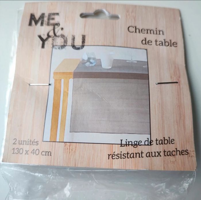 2 chemins de table anti-taches Ils sont neufs dans leur emballage d'origine 📏 130 x 40 cm 🧶 50% coton, 50% polyester Idéal pour rajouter sur une jolie nappe