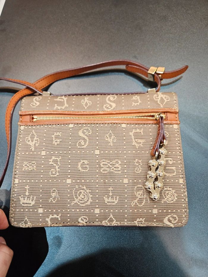Je vends mon sac à main Modèle LANCEL DALIDOL Collection DALIGRAMME Edition limitée Vendu dans son pochon LANCEL toile et cuir marron beige Fermeture intégrale par rabat Bandoulière La lanière du sac représente une chaîne de vélo, le devant du sac ce sont les signes de l'amour qui ont été créé par Salvador Dali.