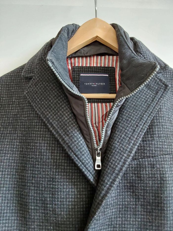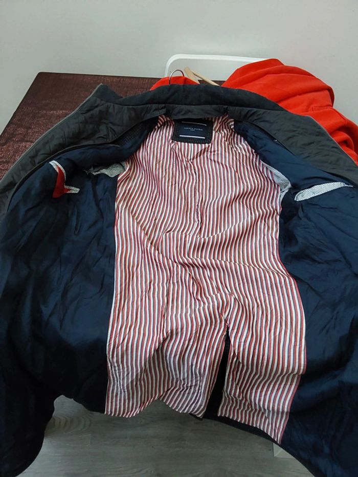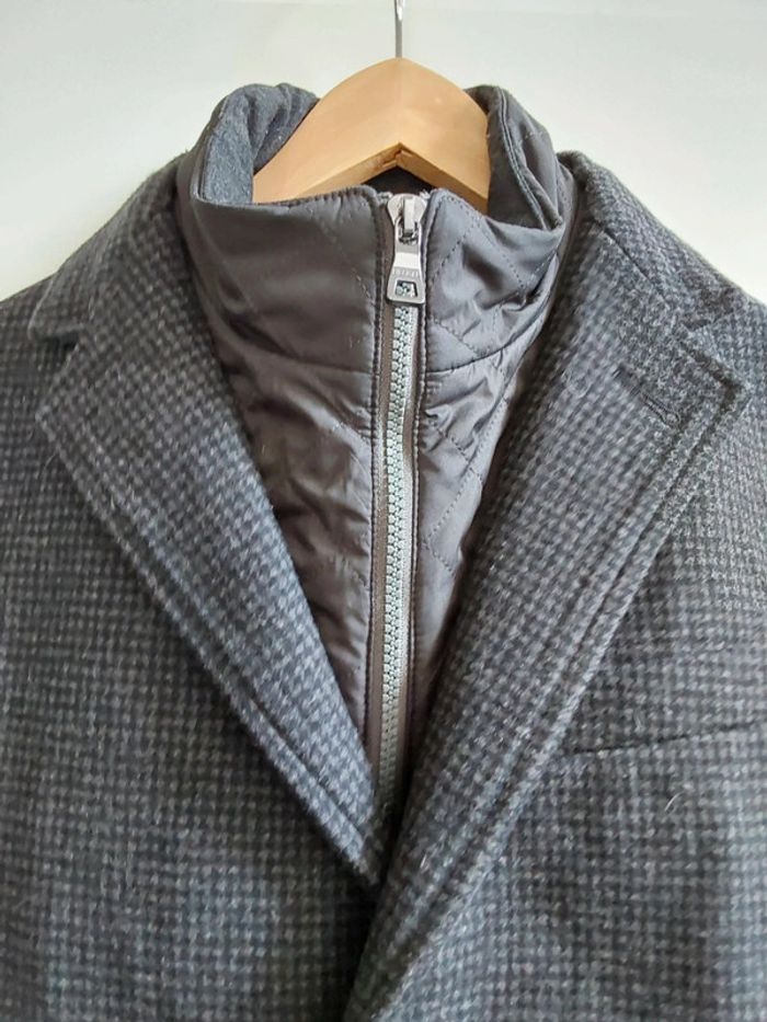 Très beau pardessus homme Col doudoune amovible L'intérieur à été repriser ainsi que la poche Taille 50 équivalent à un grand M ou petit L A 65% en laine