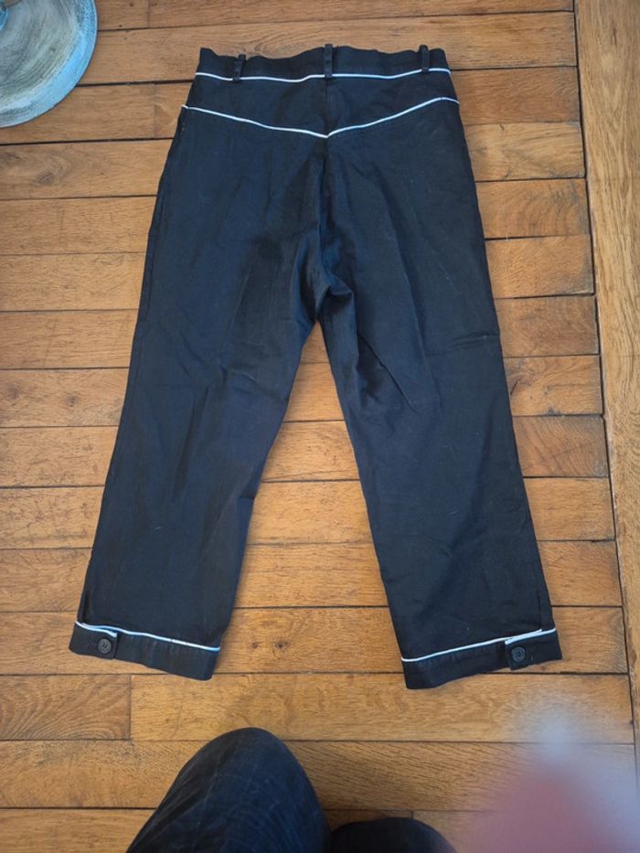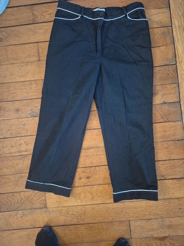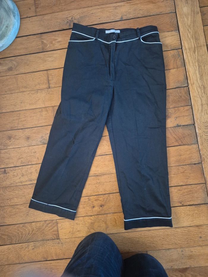 ⬇️mes autres annonces pour femme en taille 38 👉 #cg89femme38 😁 réductions activées des 2 articles ! Un pantacourt avec liseré blanc sur les poche et sur le bas avec un gros bouton. Il mesure 82 cm de longueur, 55 cm à l'entrejambe, 38 cm de taille et 20 cm en bas. très bon état, taille 38, marque virago #pantacourt #taille38 #femme #lisere #virago #pantalon