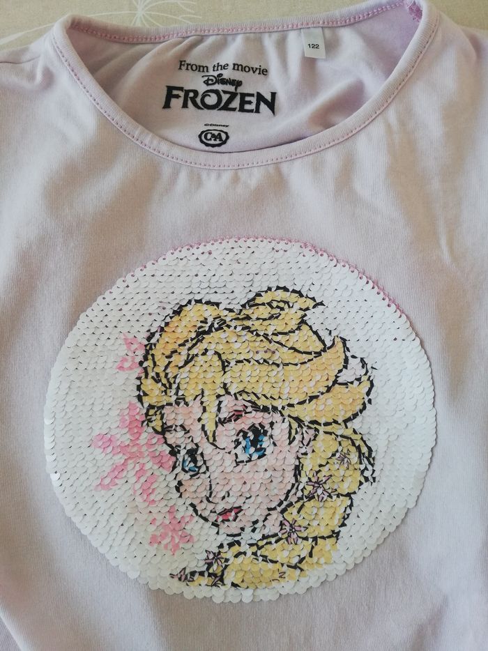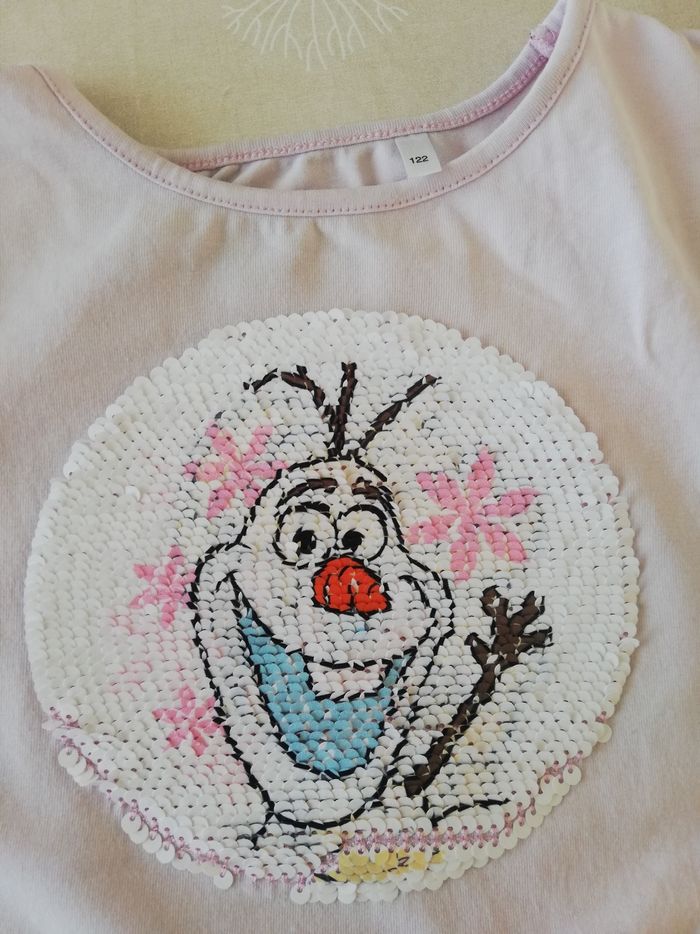 TS manches courtes rose sequins réversible la reine des neiges/olaf 122cm C&A - photo numéro 1