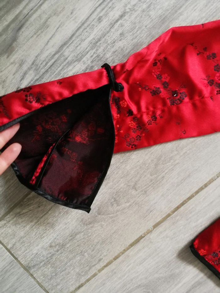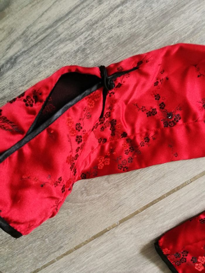 Gilet, veste en satin rouge, style asiatique, taille 40, marque H&M. Veste à manches longues en très bon état, quelques petits fils sur le col. Composition : 50% polyamide, 50% viscose. Belle pièce ! Mesures : Longueur de veste : 60 cm Longueur manch : 62 cm Largeur dos : 49 cm Poids : 270 g #giletrouge #giletmancheslongues #vesterouge #vestasiatique #vesterougeasie #vesthm #vestetaille40