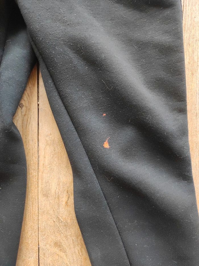 Satisfaisant. 2 taches de peinture sur le devant et des fils tirés sur les fesses.