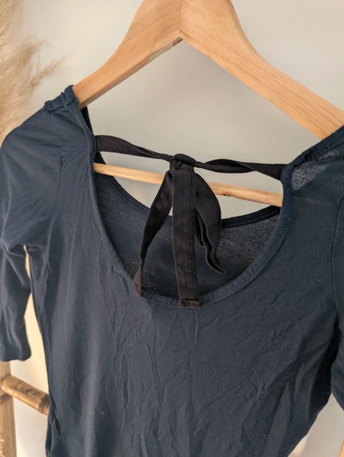 Top manches 3/4 bleu marine avec noeud - photo numéro 2