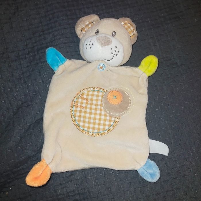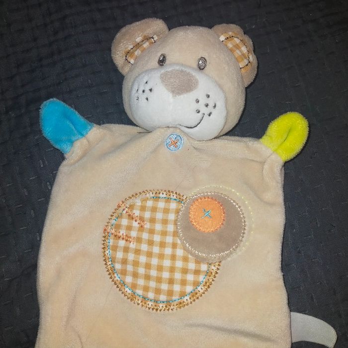 Nicotoy doudou ours plat beige gris orange vert bleu - photo numéro 1