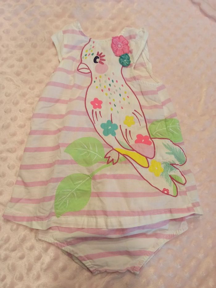 Robe rayée rose et blanche avec perroquet Très bon état - comme neufs #manoncocquet_fille3mois