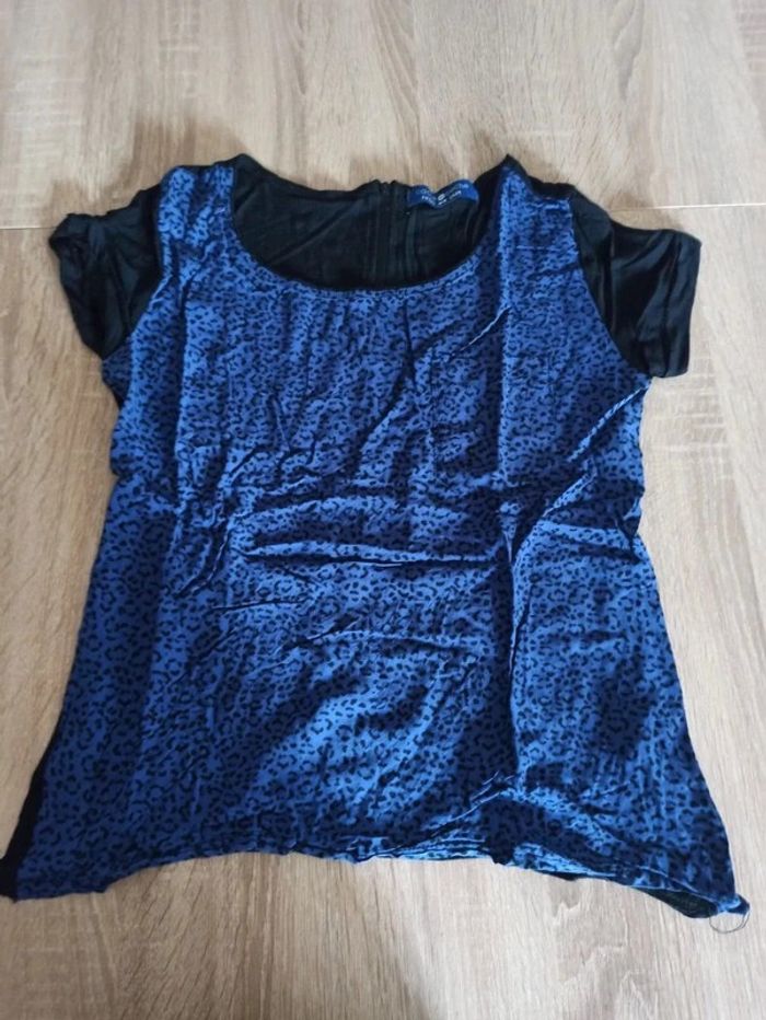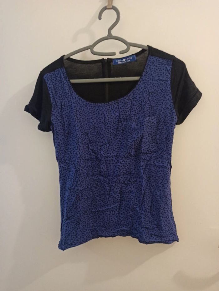 Tee shirt tâches léopard noir et bleu - photo numéro 1