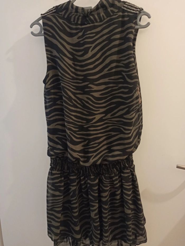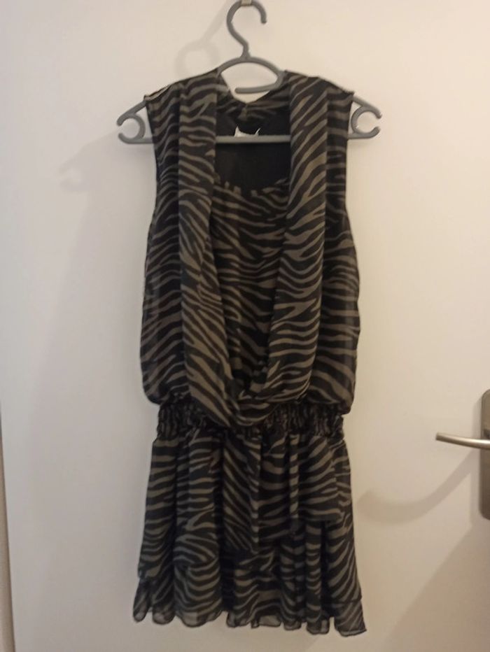 Taille 40 Robe courte Très bon état général mais quelques fils ont été tirés derrière la jupe (cf photos) Robe avec voiles Jupon en dessous de la jupe #manoncocquet_L40 Petit détail sympa aux épaules (cf photo) Élastique à la taille Transparent au niveau de la poitrine cf voilage (cf photo) #manoncocquet_L40