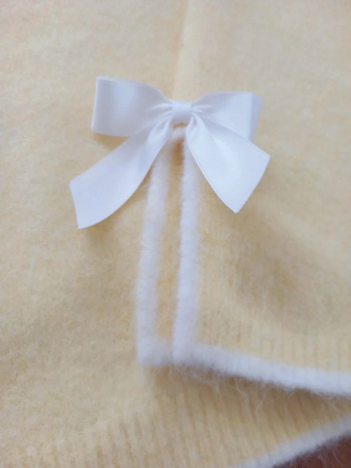 NON NEGOCIABLE Magnifique pull tout doux avec nœuds et petite fente aux poignées de belle qualité. #pull #pullfemme #pullgirly #girlysweater #pulljaunepastel #yellowsweet #sweetsweater