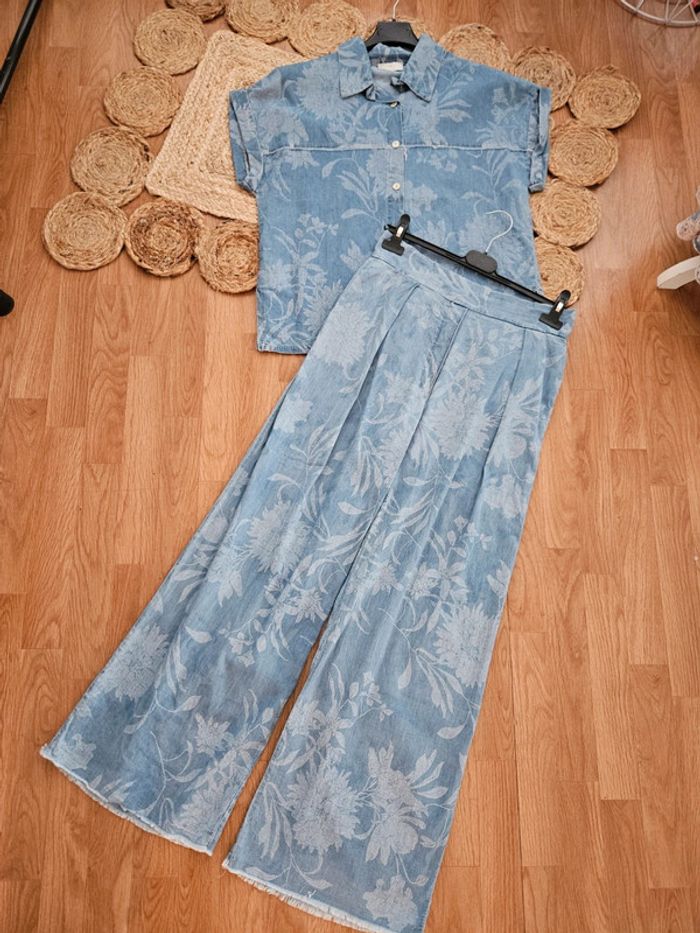 NON NEGOCIABLE Très bon état, porté une ou 2 fois. Sublime ensemble en tencel imprimé de belle qualité, made in Italy. Léger et agréable à porter. Taille unique pouvant convenir jusqu'au 40. Valeur 79 euros. #ensemble #ensemblejean #ensembleete #ensemblefemme #palazzo #palazzojean #pantalonjambeslarges #palazzoete