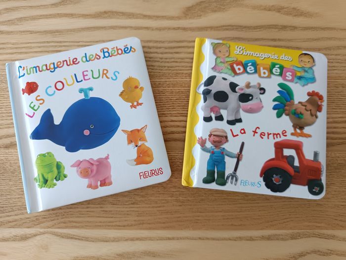 Lot de 2 livres imageries des bébés : la ferme et les couleurs Les couleurs est comme neuf. La ferme quelques traces d'utilisation mais reste en très bon état.