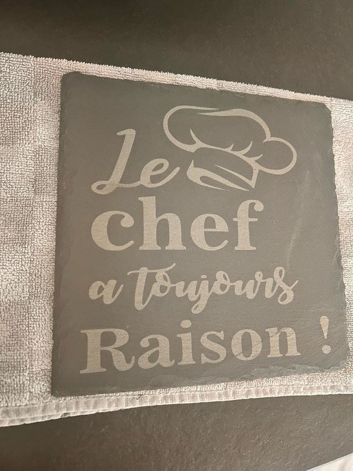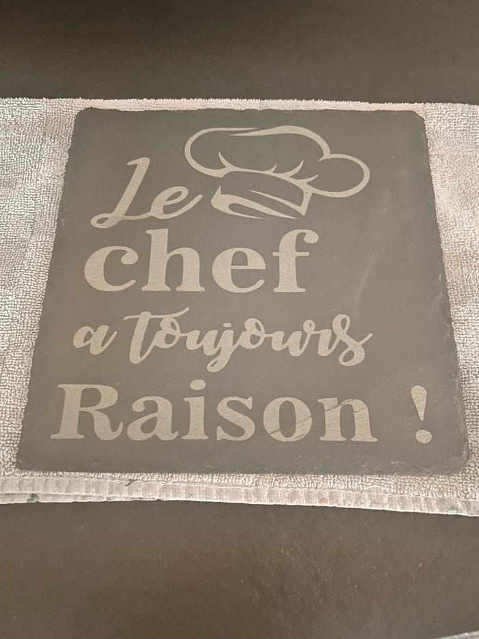 Bonjour Je vends ce dessous de plat en ardoise gravé.