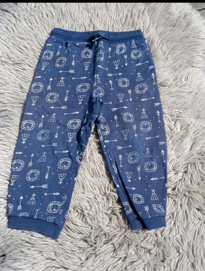 Pantalon jogging Bleu motifs lions et tipis Taille 23 mois 86cm Bon état général, petit accro repris au niveau d'un genou Orchestra #liibyboydeuxans #23mois #2ans #pantalon #jogging #orchestra