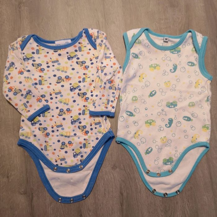 Lot de 2 bodys 📃En bon état 🏷️Je ne sais pas les marques 📏Taille 6/9 mois 🎨Coloris bleu avec nuances N'hésitez pas à aller voir sur ma vitrine je fais des prix pour les lots Je suis disponible si vous avez des questions 😊 Bon shopping à vous 🛒🛍️