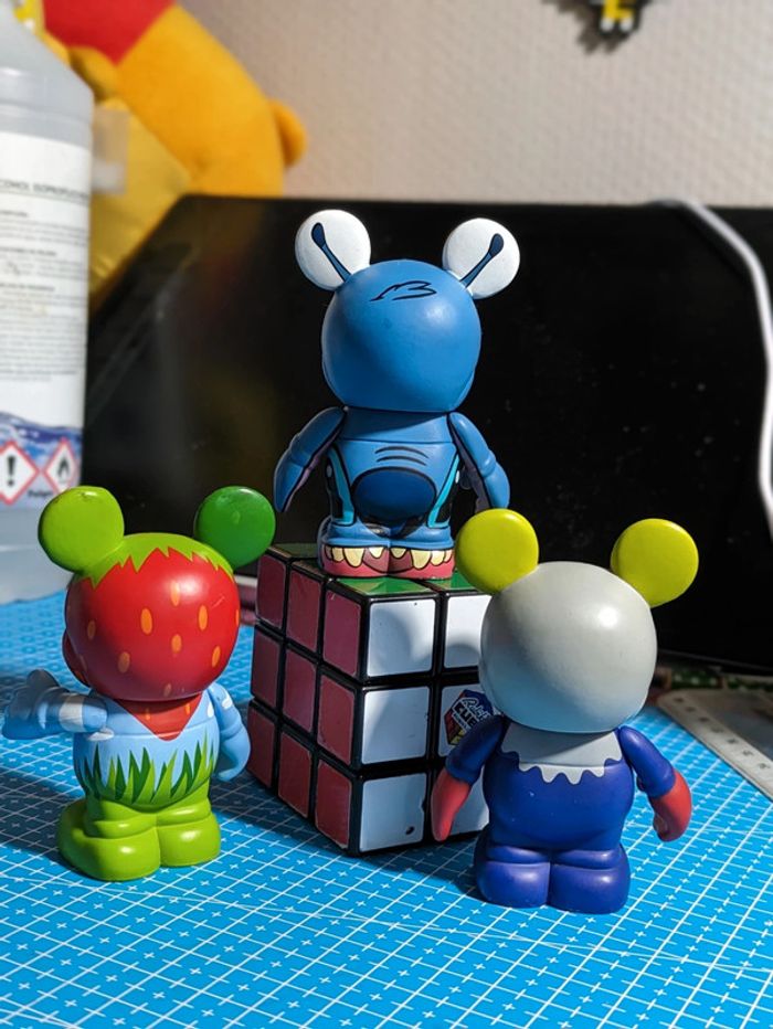 Lot de 3 figurines Vinylmation dont : - Stitch ( Big Eyes set ) - Thomas Scott - Strawberry Field ( Urban set) - Dan Howard - Purple Bear ( Urban Set ) - Dan Howard Quelques légers défauts mais restent en très bon état. #vinylmation #disney #stitch #disneyliloandstitch #disneyfigures