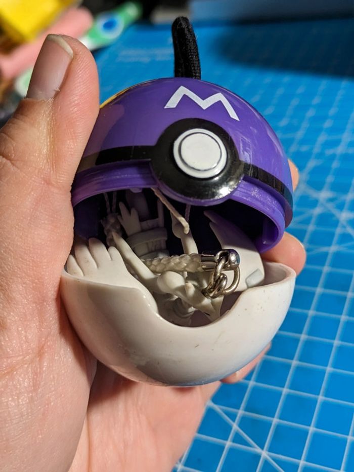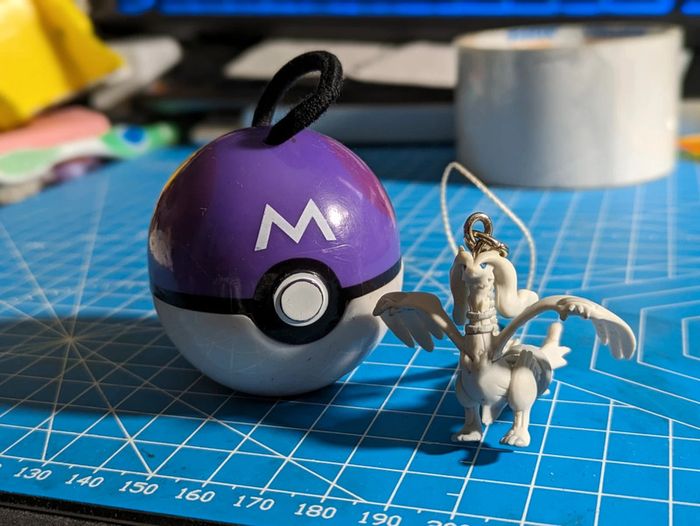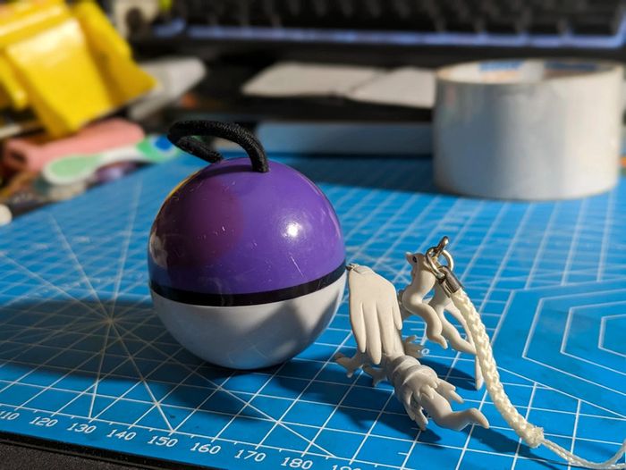 Mini MasterBall d'environ 5cm de diamètre avec un porte-clés du Pokémon Reshiram Produits officiels