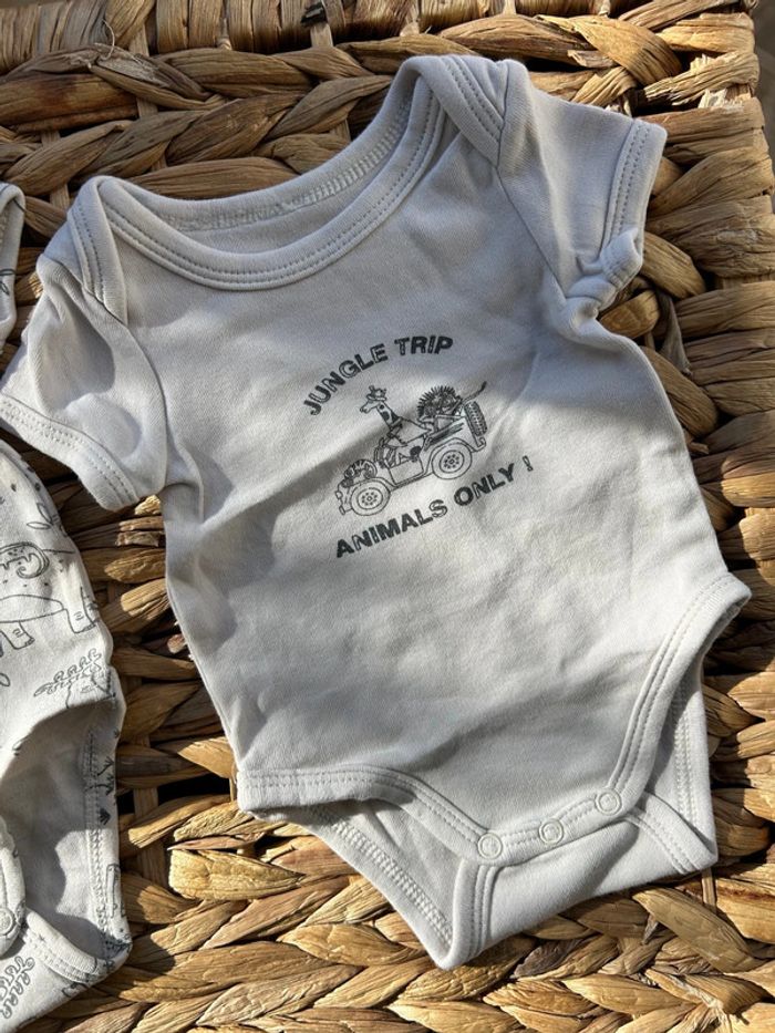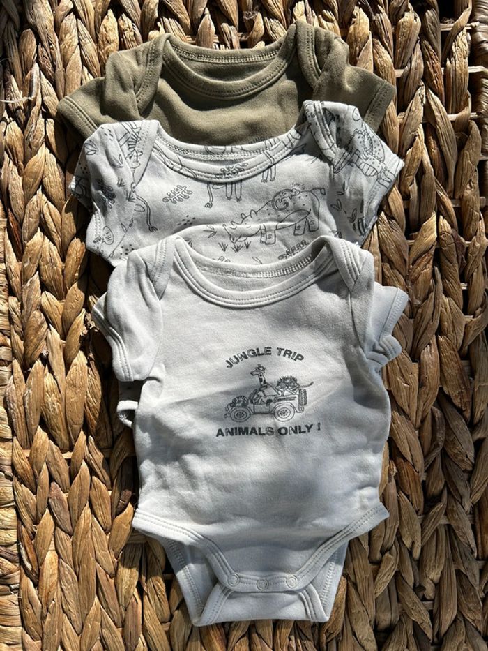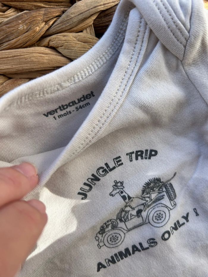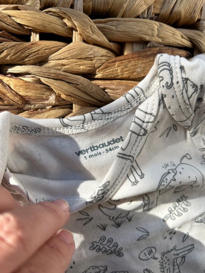 Lot de 3 bodys Marque Vertbaudet Taille 1 mois - 54cm Neufs, jamais porté, juste lavé 1 fois Thème jungle