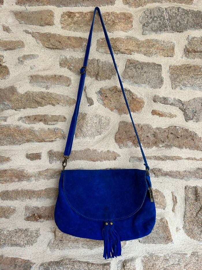 Sac en bandoulière Cuir de vachette Couleur bleu électrique Neuf, aucun défaut