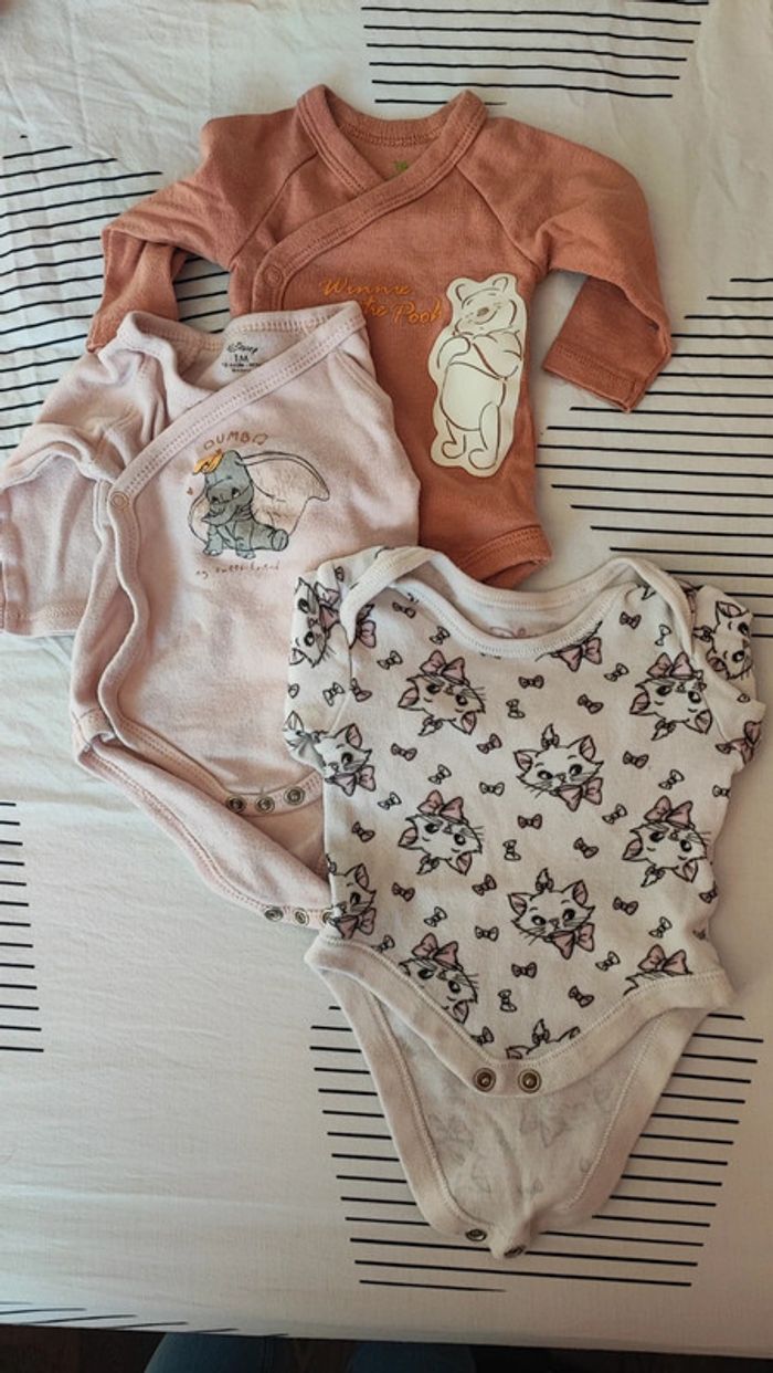 Lot de 3 bodies manches longues Marque Disney Taille 1 mois Portés quelques fois