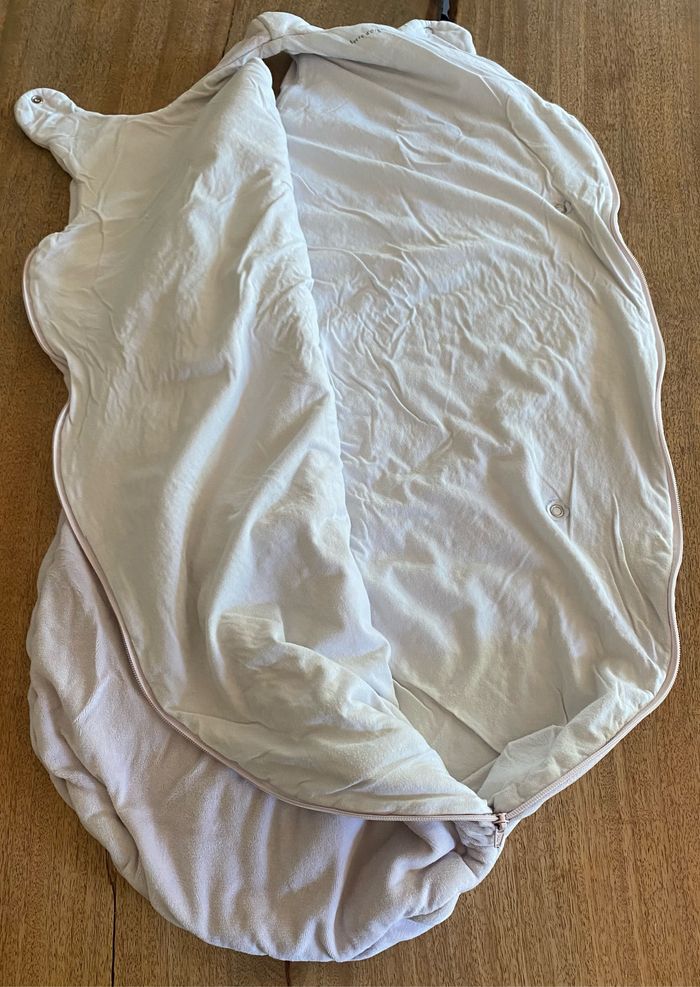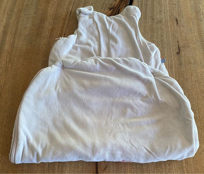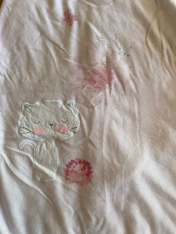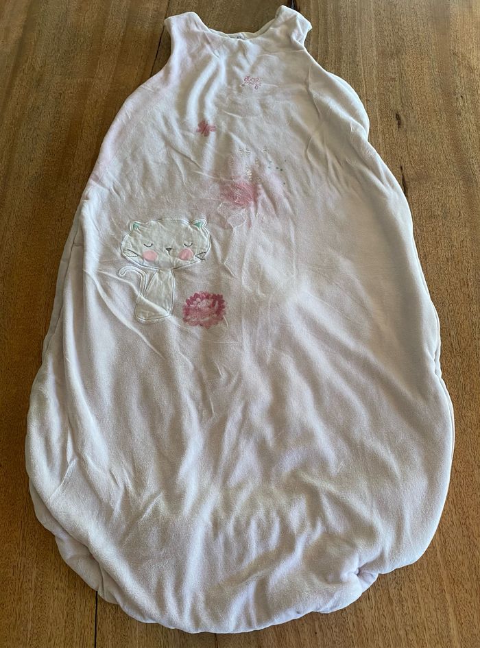 Gigoteuse, évolutif. Fermeture sur le côté droit avec pression en haut au niveau de l’épaule. Sans tâche