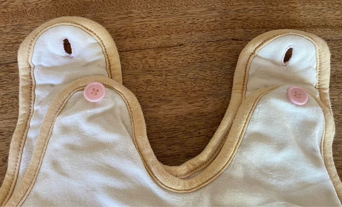 Gigoteuse avec fermeture côté droit. Deux boutons au niveau des épaules. Sans tache