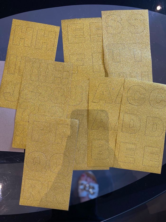 Lot 8 feuilles prédécoupé grandes lettres doré