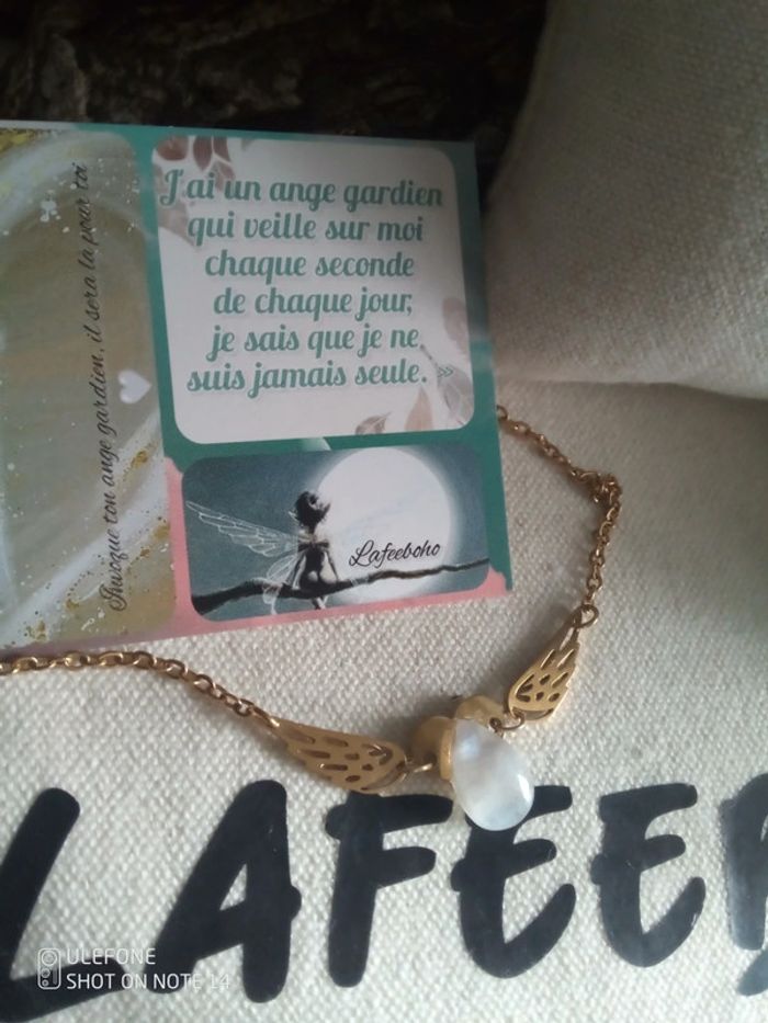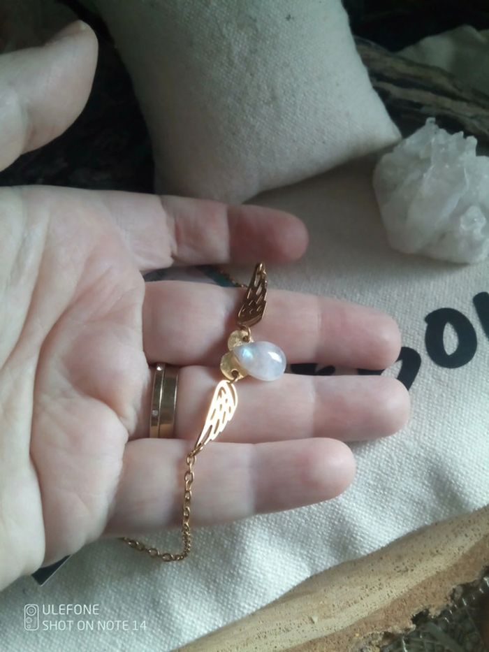 Collier ailes d'anges et pierre de lune à reflets bleutés naturelle + carte - photo numéro 6