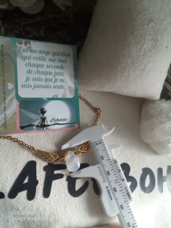 Collier ailes d'anges et pierre de lune à reflets bleutés naturelle + carte - photo numéro 5