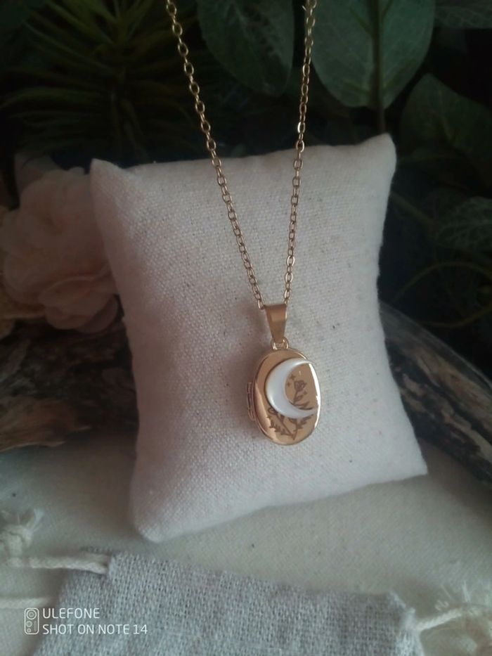 Collier médaillon ouvrable avec lune en nacre naturelle - photo numéro 2