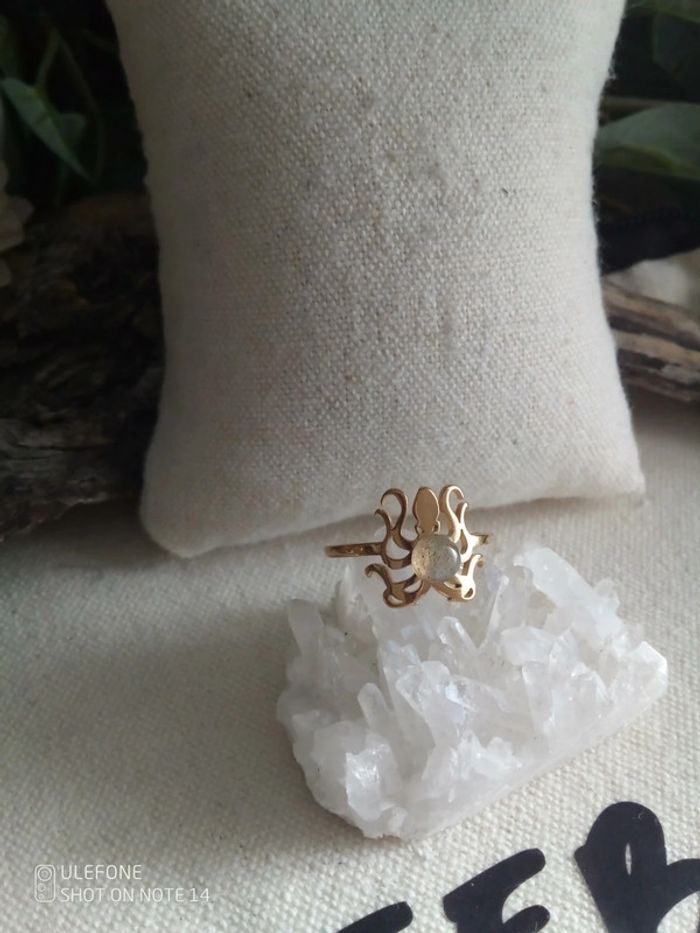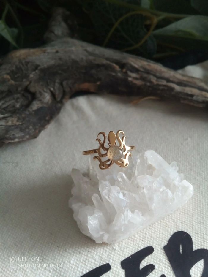 Bague pieuvre et pierre naturelle de labradorite - photo numéro 1