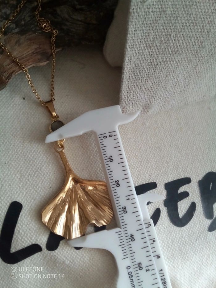 Collier feuille de Ginko et pierre de labradorite - photo numéro 2