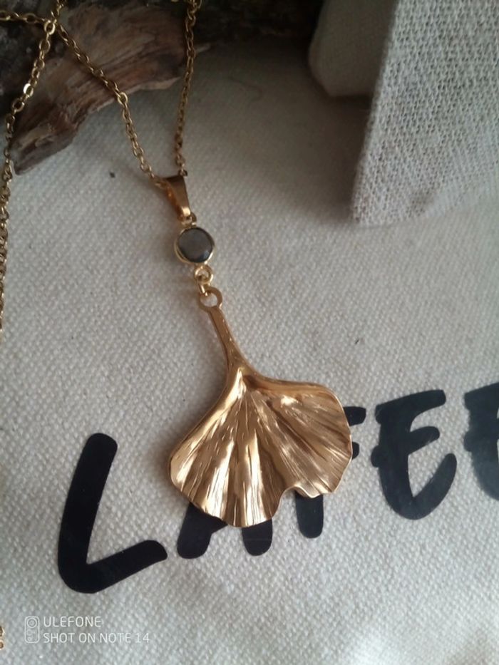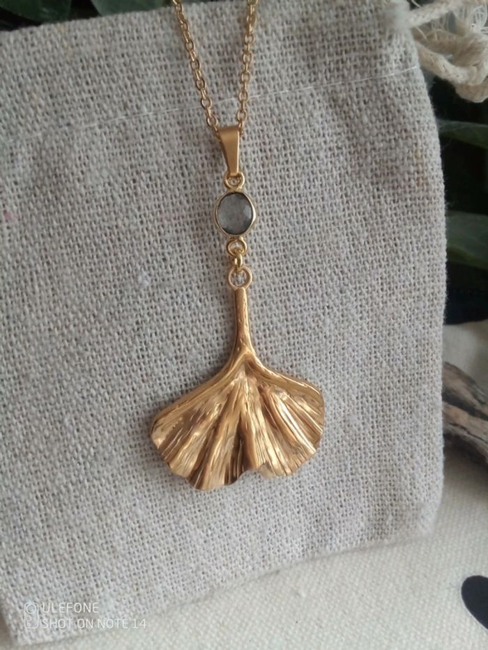 Collier feuille de Ginko et pierre de labradorite - photo numéro 1