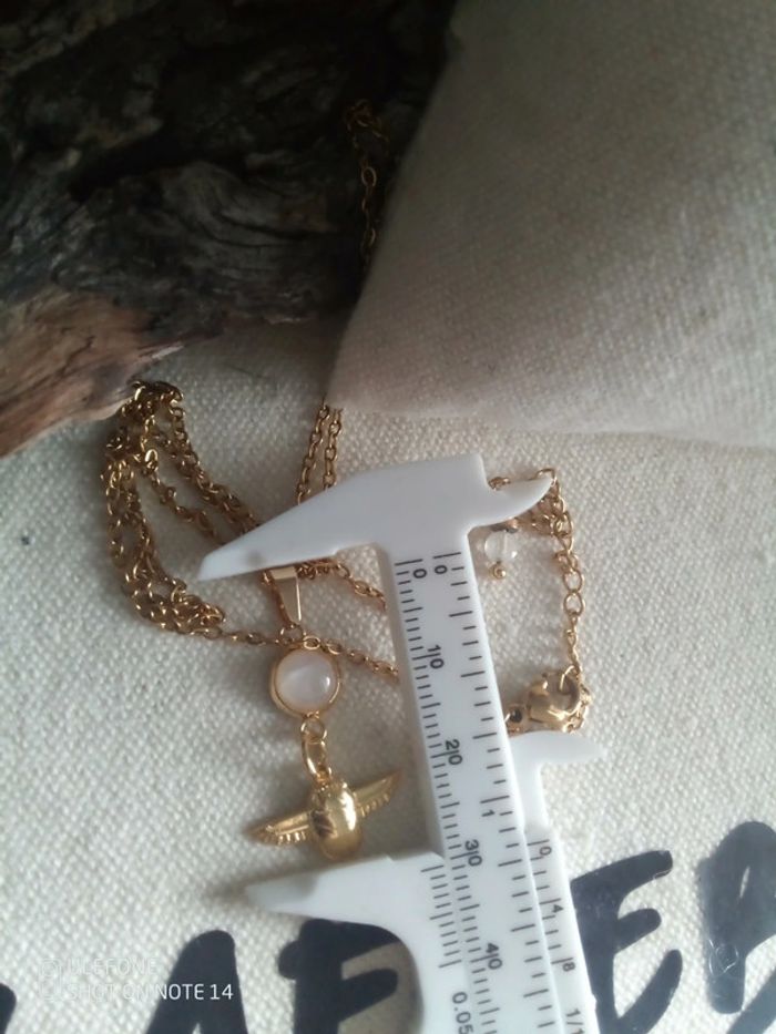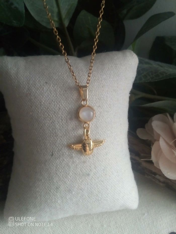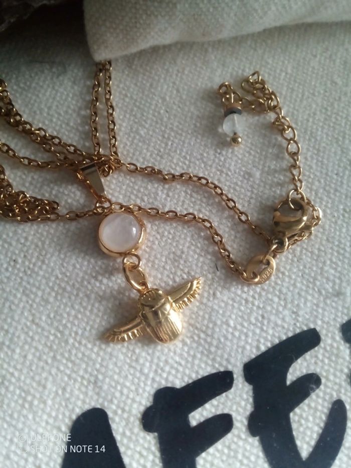 Collier scarabée et pierre de lune plaqué or - photo numéro 1