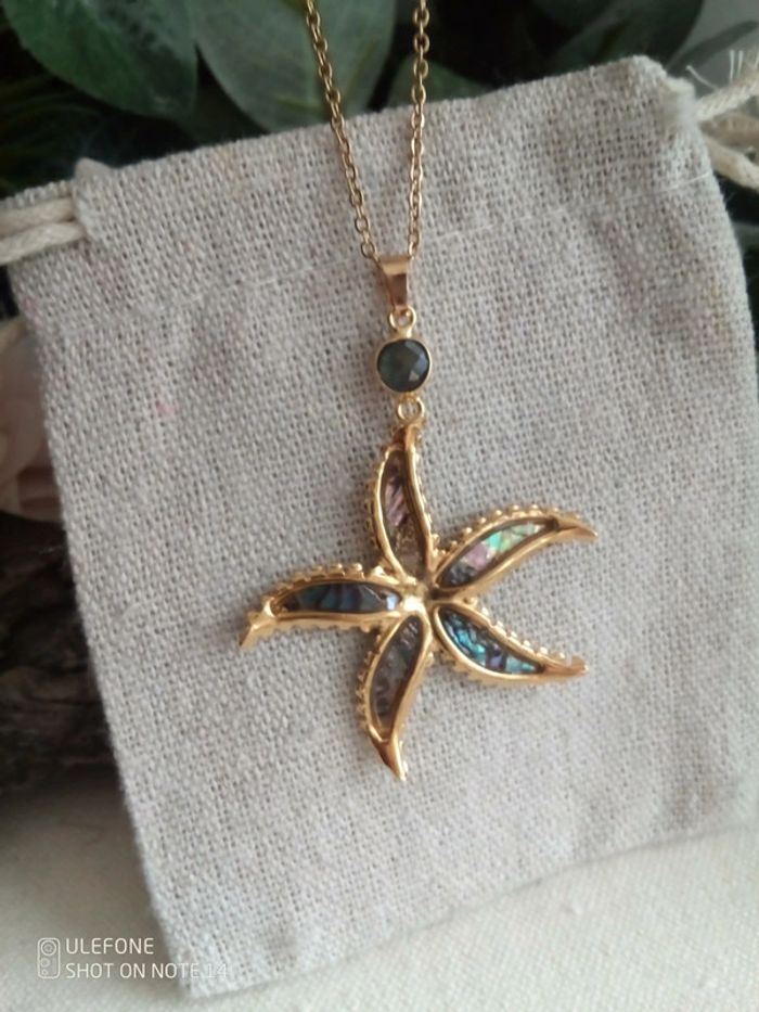 Collier long étoile ormeaux et pierre de labradorite naturelle - photo numéro 1