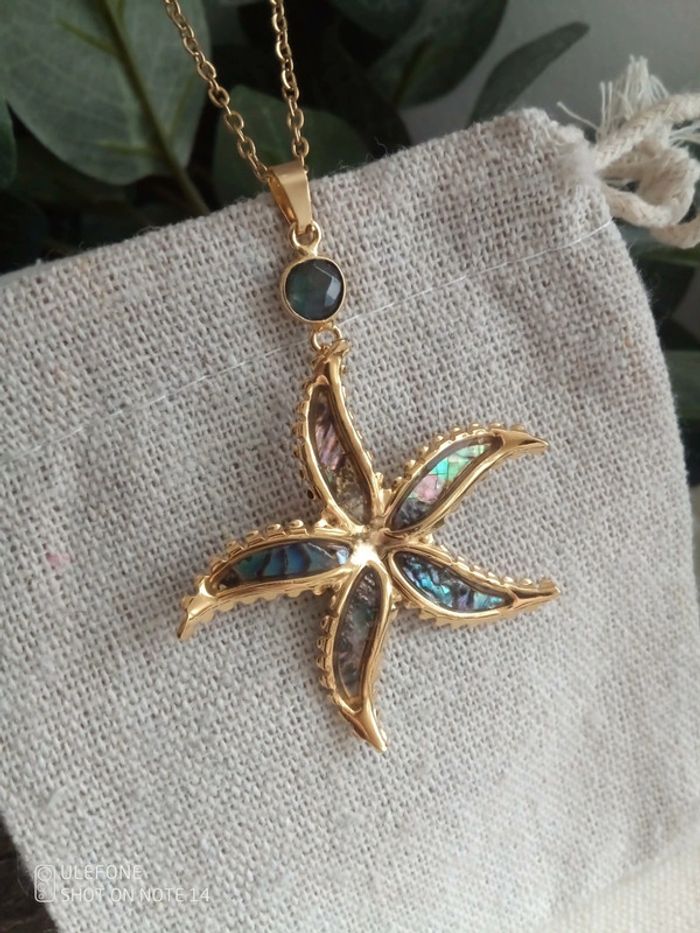 Collier long étoile ormeaux et pierre de labradorite naturelle - photo numéro 3
