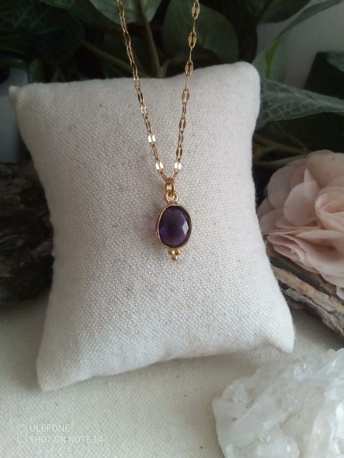 Collier pendentif sertie en améthyste naturelle - photo numéro 3