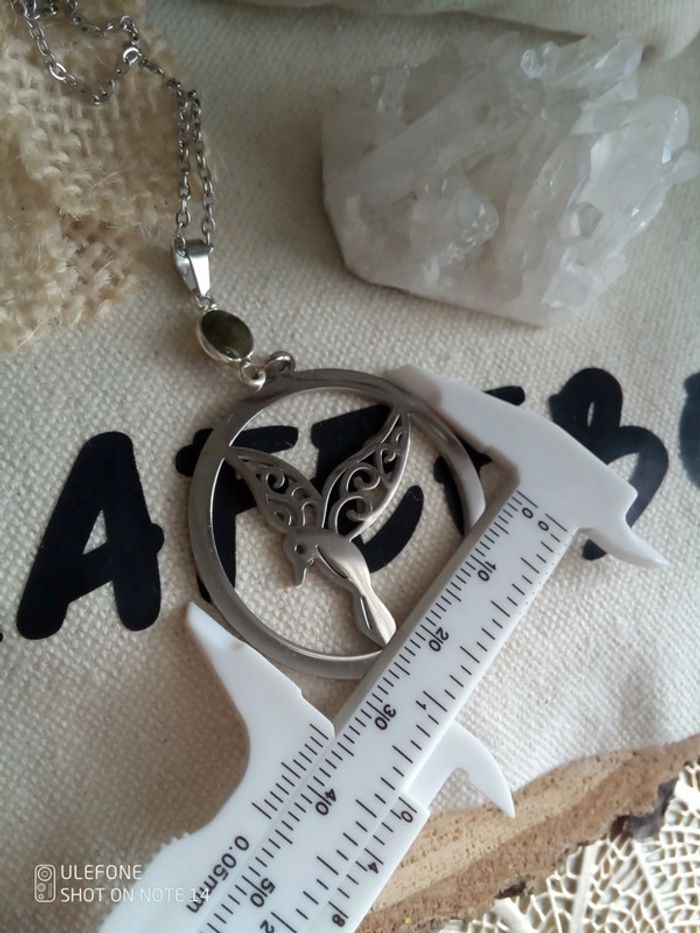 Collier colibri argenté et connecteur en pierre de labradorite - photo numéro 2