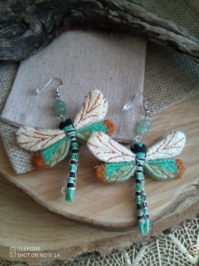Boucles d'oreilles libellules et pierres d'aventurine 💚.