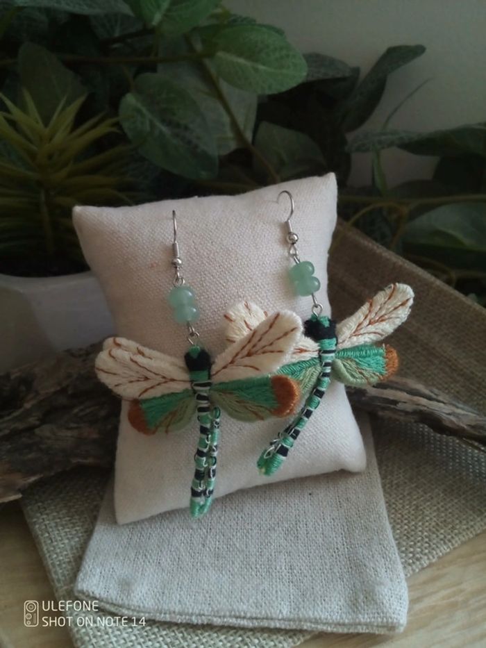 Boucles d'oreilles libellules et pierres d'aventurine 💚. - photo numéro 3