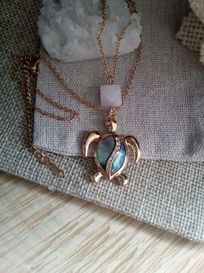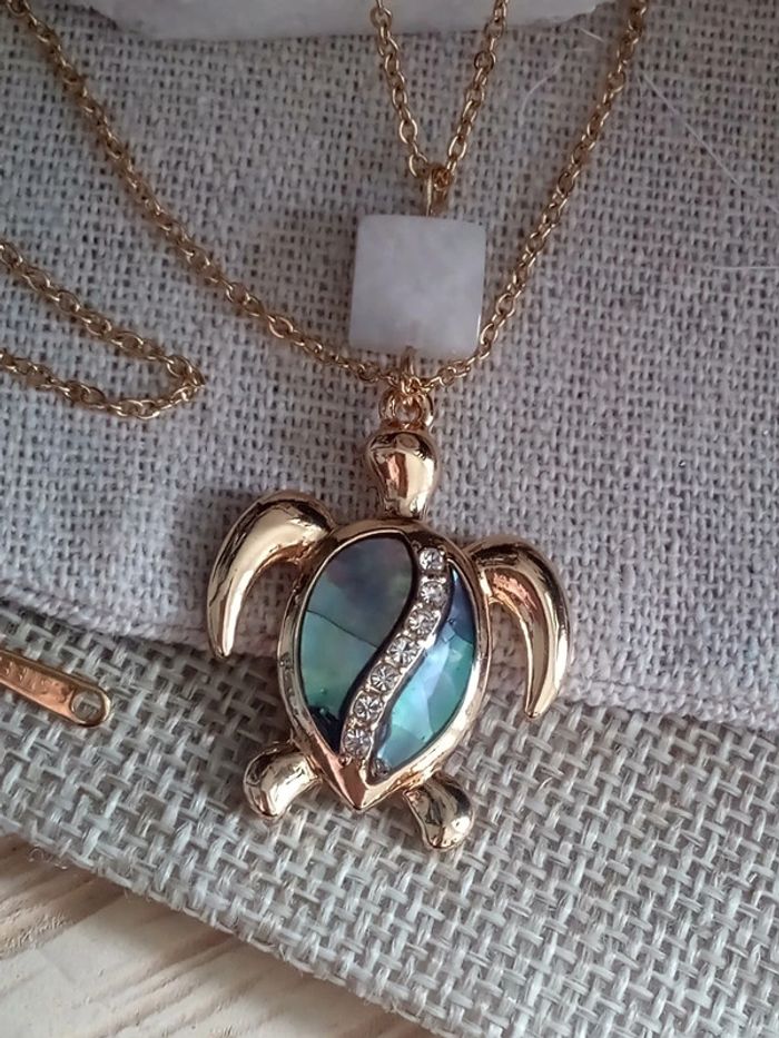 Réductions UNIQUEMENT sur les lots ☀️☀️ Prix FERME (réductions sur les lots) 🌷 Chaîne et tortue en acier inoxydable 45 cm et 5 cm d'extension 🌿 unique 🌿 pierres 100% naturelles Si vous êtes intéressée par un lot : (il faut m'envoyer un petit message sur chaque article pour que je puisse vous faire le lot avec les réductions décrites ci-dessous ☺️) 🤍 Frais de port offert pour 2 articles (3 e déduit sur la somme totale) 🤍 A partir de 3 articles je fais 10% sur le lot (sans déduction des frais de port) Vous trouverez aussi pierres naturelles précieuses d'améthyste jade labradorite kyanite ambre citrine pierre de lune onix vintage tweed oversize libellule magie wicca bohème fée boho mortelle Adèle yin yang bouddhiste hindou spirituel nuit étoile ethnique grossesse pêche maternité blanche rouge noir œil cœur hindi cargo cadeau bola scarabé nuit sorcellerie ésotérisme mode maman amulette bonheur ethnique santé guérison prière talisman prénom manga chemin indien oriental viking celte obsidienne trèfle zircon or 18k 24k lithothérapie dentelle ambre cadeau anniversaire mariage baptême fête coeur