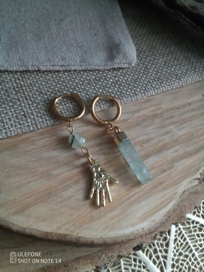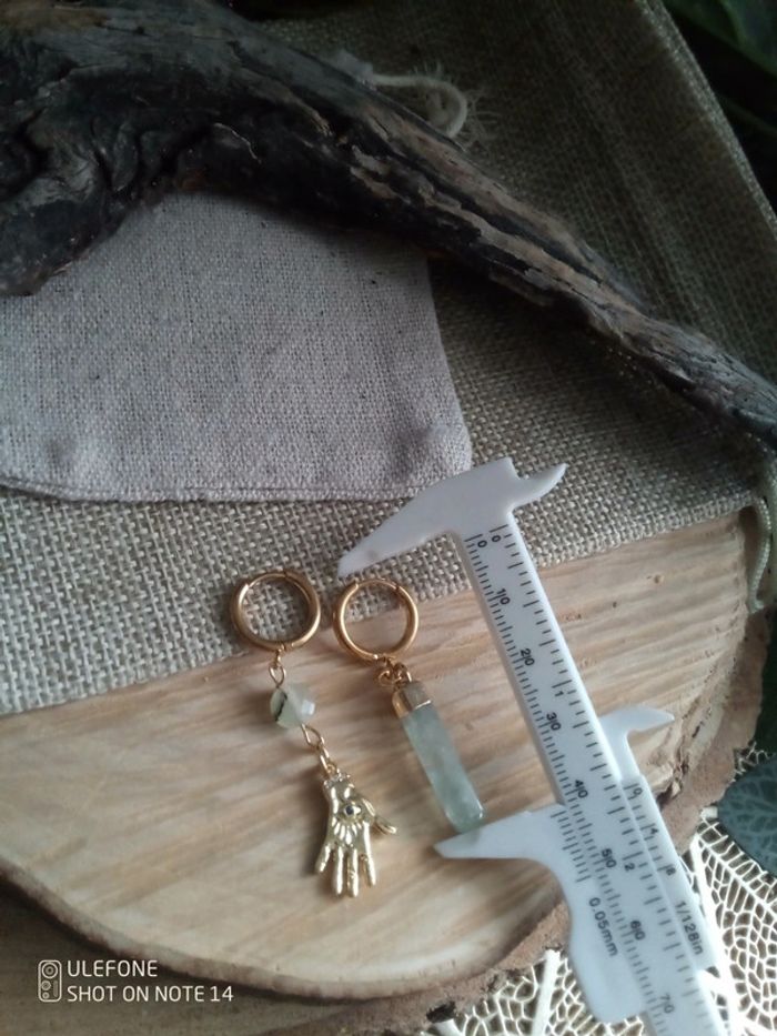 Boucles d'oreilles bohèmes main jade phrénite - photo numéro 2