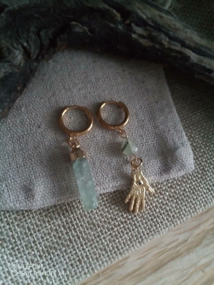 Boucles d'oreilles bohèmes main jade phrénite - photo numéro 1