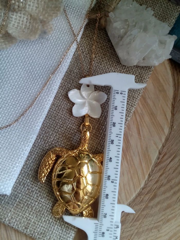 Collier tortue dorée et fleur de n'a'c'r'e naturelle - photo numéro 3