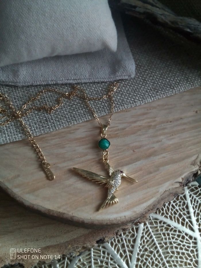 Collier pierre d'émeraude et pendentif colibri - photo numéro 1