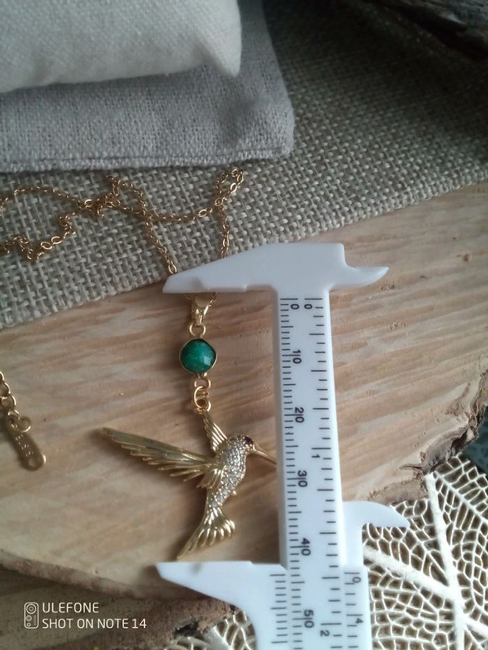 Collier pierre d'émeraude et pendentif colibri - photo numéro 2