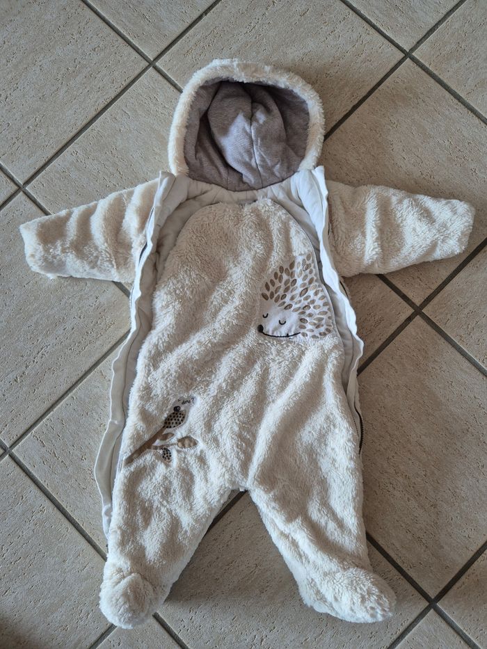 En excellent état . Très pratique car s ouvre jusqu en bas. Pieds attachés fixement à la combinaison. Très peu portée. Nous n avons plus les moufles qui se fixaitent dessus
