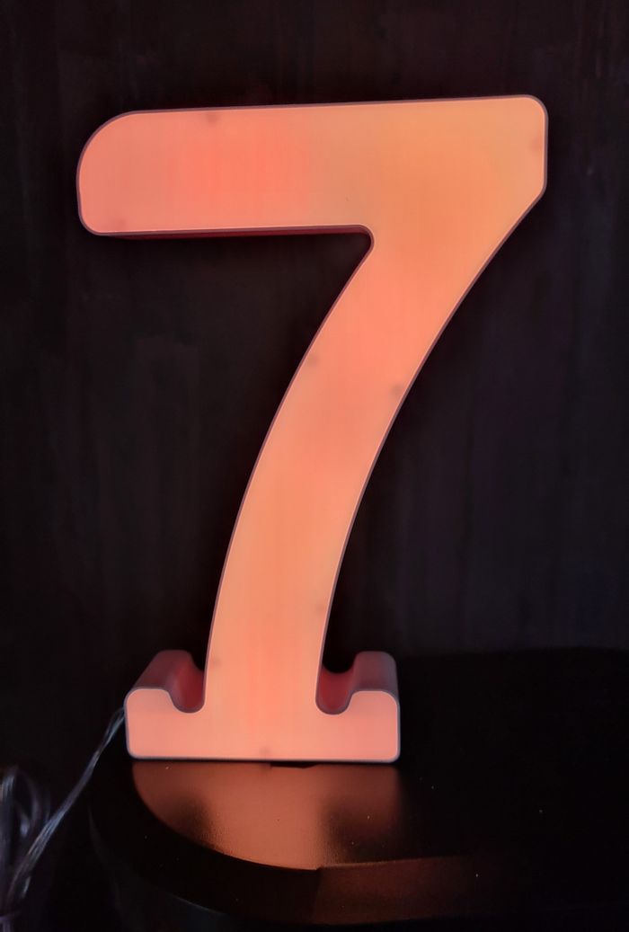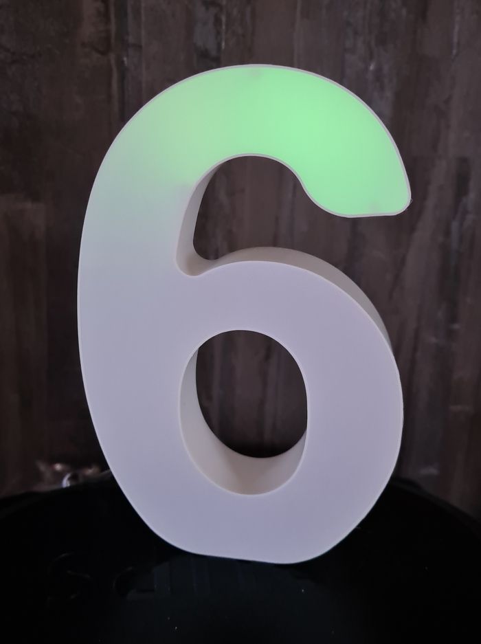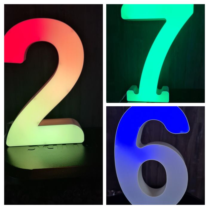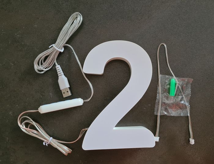 Chiffres 2 - 6 - 7 - lumineux Chiffres LED en plastique blanc d'une hauteur de 15 cm Lumières alimentées par USB pas besoin de piles, c'est plus pratique et très économique ! Chaque chiffre peut être relié à un autre. Nombreux changements de couleurs. Couleurs statiques ou variables. Contrôle possible avec application connectée sur smartphone, dimmable (la luminosité peut être réduite), couleurs changeantes. Peuvent servir d'appliques, être posés sur un meuble ou fixés au mur. Neufs, pas testés avec l'APP. Peuvent être vendus séparément à 7 euros l'unité, le lot 15 euros.