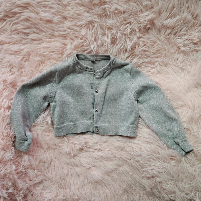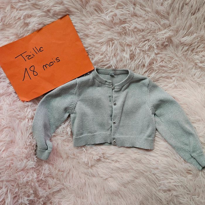 En excellent état très peu porté gilet fin type boléro à bouton gris paillettes taille 18 mois #18moisbelibel54 #giletbebe
